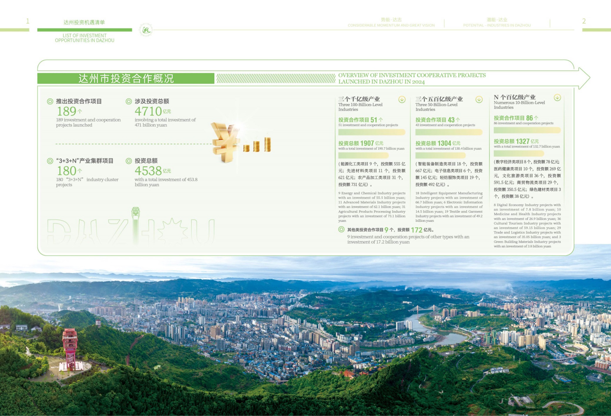 The following is the list of investment opportunities in Dazhou. We warmly welcome enterprises to invest and start businesses in Dazhou.