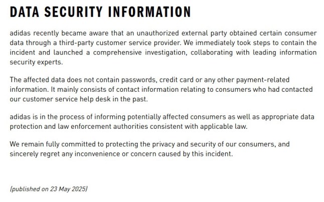 Adidas is latest cyberattack victim with shoppers' data stolen