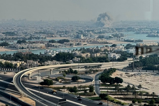 This frame grab taken from an AFPTV footage shows a man looking at smoke billowing after explosions in Doha (Picture: Reuters)