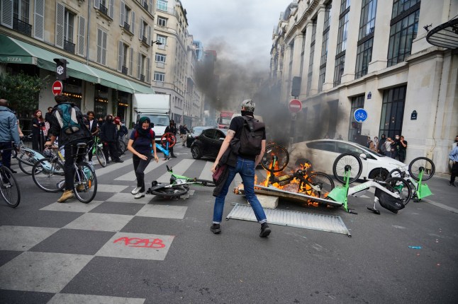 A restaurant in the centre of Paris has been engulfed in flames amid the nationwide ‘Block Everything’ protest attended by around 200,000 people today.